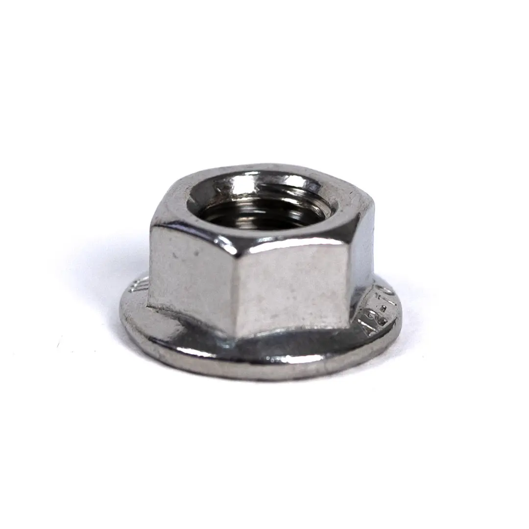 A legmagasabb minőségű 1.4301 (A2) 304 rozsdamentes acélból készült karimanyák kivételes korrózió- és kopásállóságot biztosítanak. Ez a kiváló anyag hosszú élettartamot biztosít még zord időjárási körülmények között is. A rozsdamentes acél robosztus jellege lehetővé teszi a biztonságos meghúzást, míg a rezgés és nyomaték hatására történő meglazulással szembeni eredendő ellenállása folyamatos, biztonságos kapcsolatot biztosít a fotovoltaikus szerelvényben.