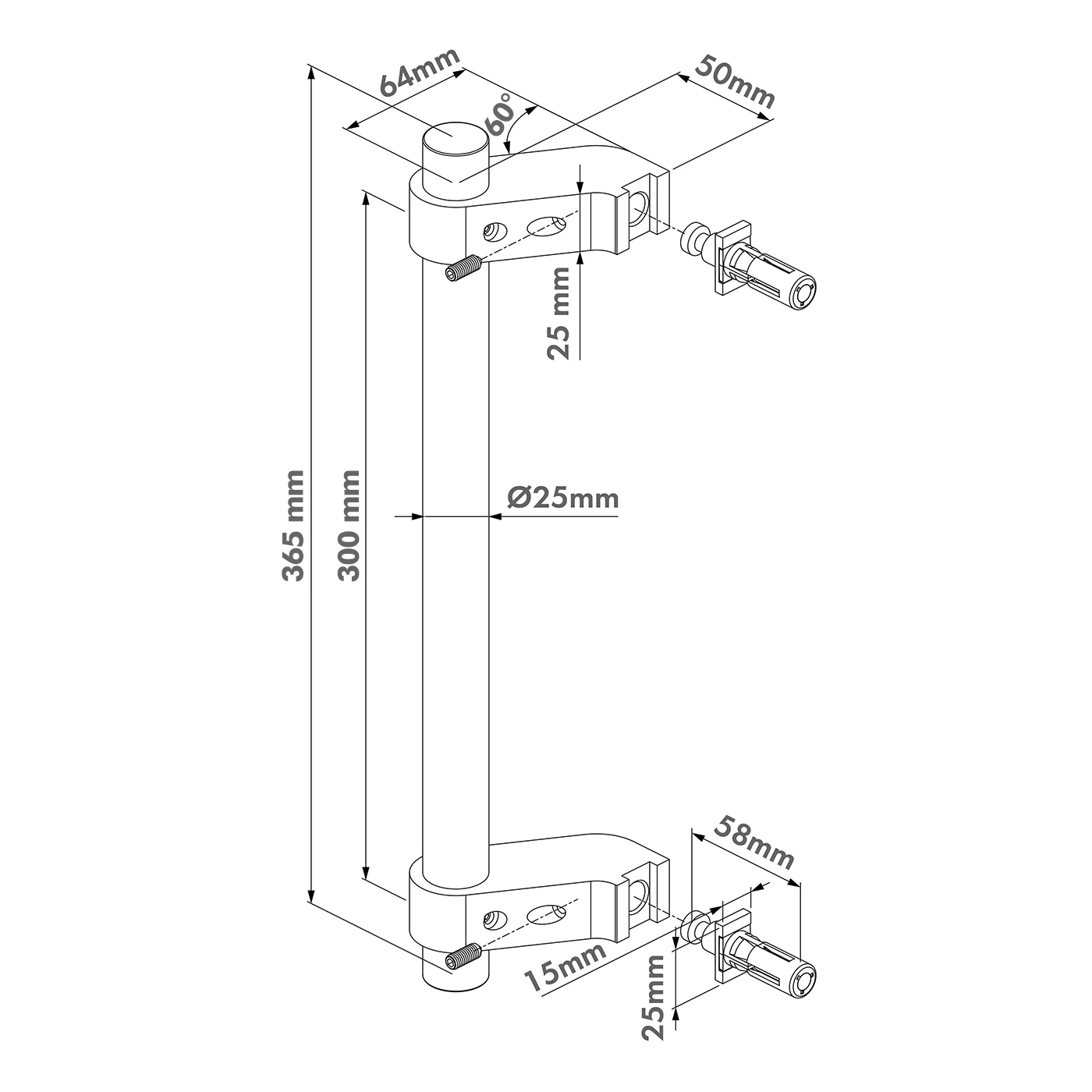 Locinox – álló kapufogantyú anodizált alumíniumból 365 mm, fekete, egyoldali 60°