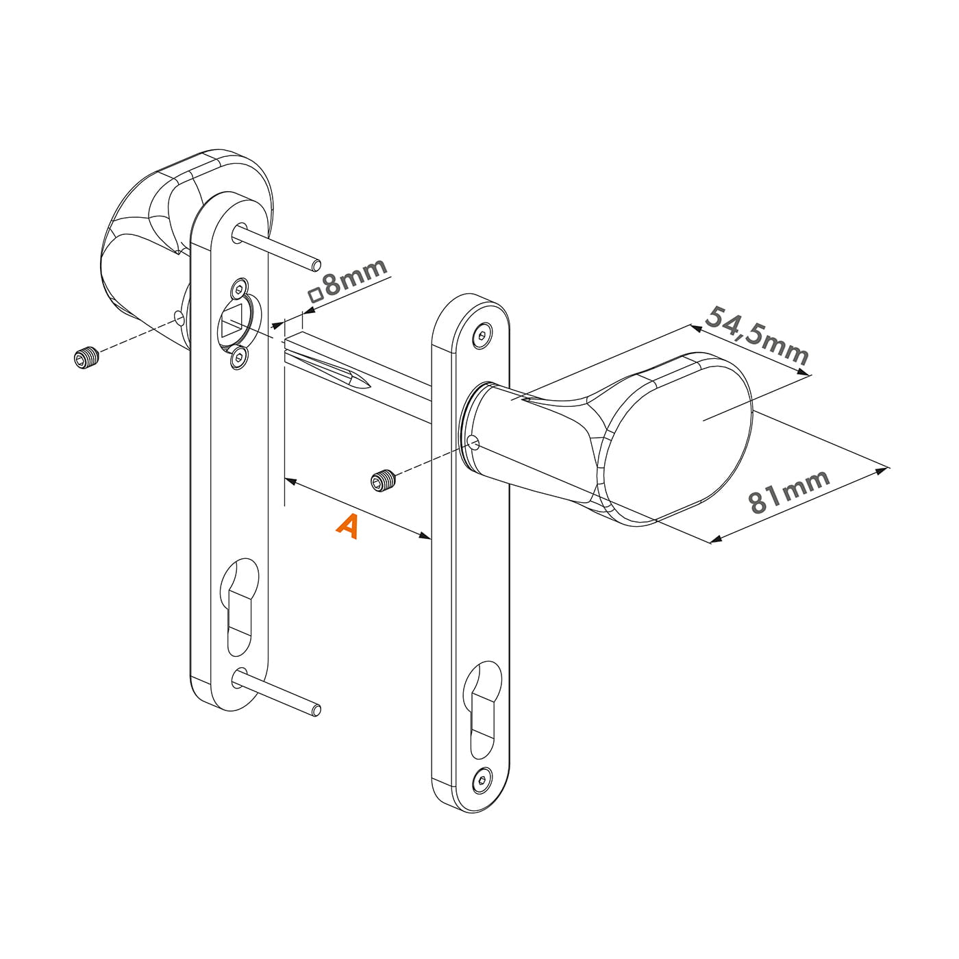 A készletben rögzítőcsavarok találhatók, amelyek lehetővé teszik a telepítést 37 mm-től 65 mm-ig terjedő vastagságú profilokra, ami lefedi a kerítésekben és kapukban használt népszerű profilok többségét. A négyzetes 8 mm-es tengely és a szabványosított 92 mm-es lyosztás szilárd, biztos kapcsolatot biztosít a zárral és gyors szerelést tesz lehetővé a profil további megmunkálásának szükségessége nélkül.