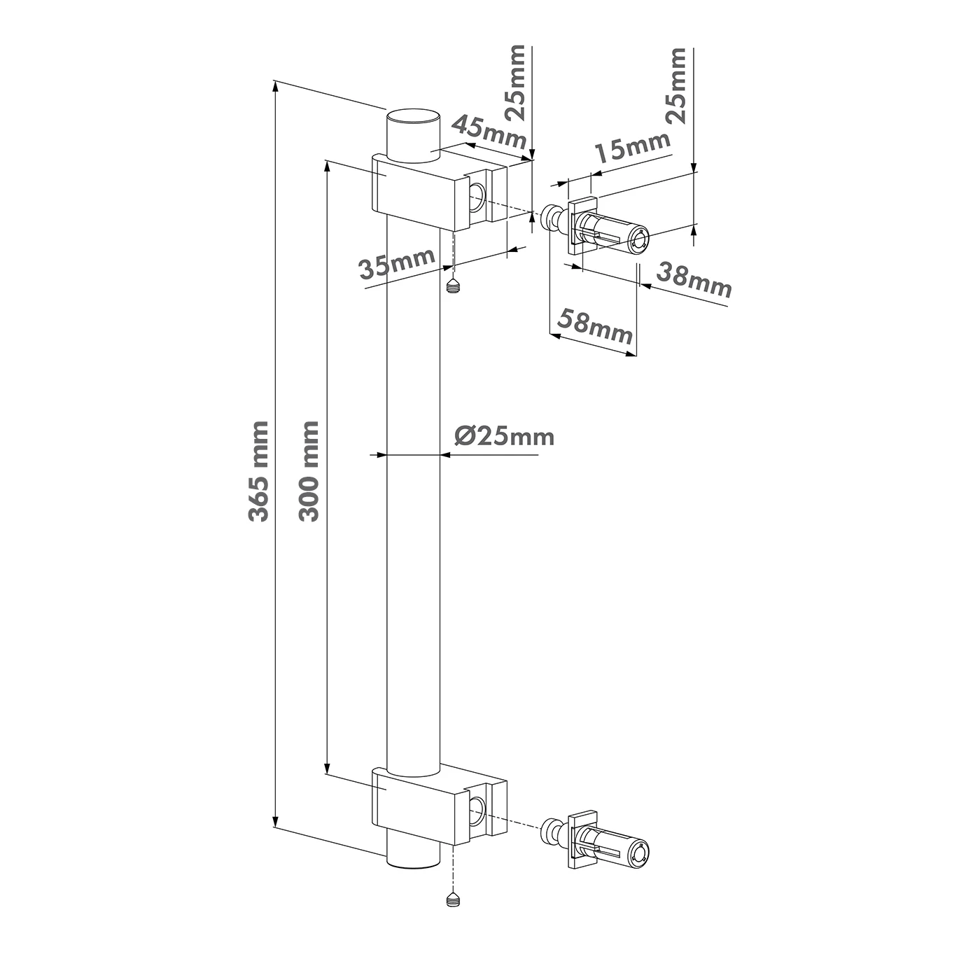 - Fogantyú cső átmérője: Ø25 mm