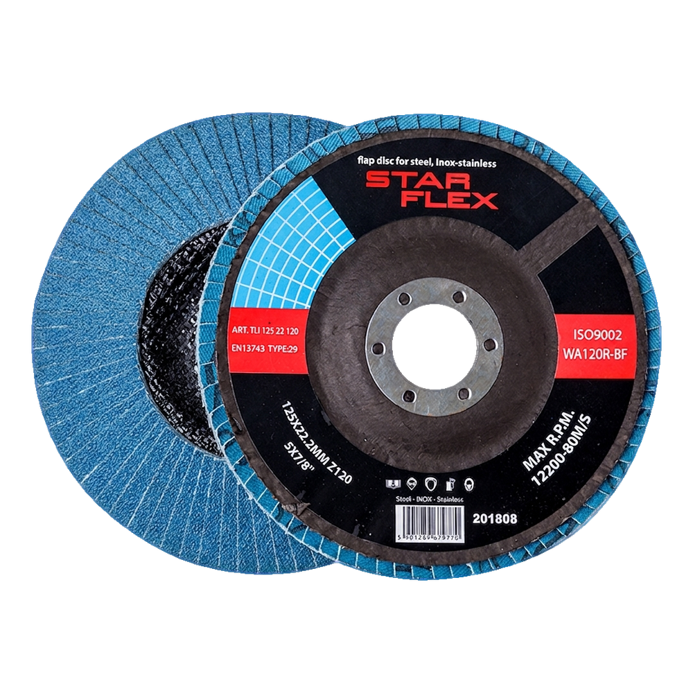 A Star Flex T29 125 mm Z120 hajlított lamellás csiszoló egy kiváló minőségű csiszolószerszám cirkon bevonattal, amelyet intenzív rozsdamentes acél (INOX) és szénacél megmunkálásra terveztek. A cirkon szemcse önélező tulajdonságokkal rendelkezik, ami hosszú élettartamot és magas teljesítmény fenntartását jelenti a teljes használati időszak alatt — kevesebb szerszámcsere-állásidő gyorsabb munkabefejezést jelent.
